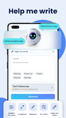 Dar AI Email APP este mai mult decât un simplu manager de email. Împuternicit de inteligența artificială avansată, aplicația vă asistă în crearea mesajelor impecabile. Funcția de verificare AI analizează în timp real gramatica și ortografia emailurilor pe care le compuneți sau la care răspundeți, sugerând corecturi precise pentru a asigura o comunicare profesională și fără greșeli. Această capabilitate inteligentă nu doar optimizează procesul de scriere, ci și elimină stresul verificărilor manuale, permițându-vă să răspundeți rapid și cu încredere. Schimbarea între conturi multiple este, de asemenea, o experiență fluidă și rapidă, menținându-vă productiv.