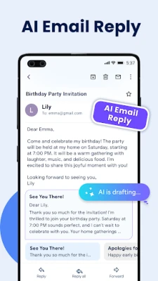 Dincolo de inteligența sa, AI Email APP aduce și o serie de funcționalități esențiale pentru o experiență de utilizare superioară. Organizați-vă eficient corespondența cu filtre personalizabile și foldere intuitive, prioritizând ceea ce contează cel mai mult. Rămâneți la curent cu notificări în timp real pentru emailuri noi și actualizări importante. Interfața sa simplă și designul prietenos asigură o navigare intuitivă, completată de un mod întunecat imersiv, conceput pentru a vă proteja sănătatea ochilor. În plus, AI Email APP protejează datele dvs. sensibile prin criptare avansată, garantând securitatea tuturor comunicațiilor. Descoperiți o nouă eră a eficienței și siguranței în gestionarea emailului.