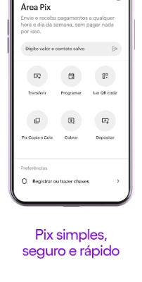 Aprofundează-ți experiența financiară cu o gamă variată de instrumente de investiții, adaptate obiectivelor tale. Realizează transferuri rapide și sigure cu Pix, complet gratuit, direct din aplicație. Protejează-ți activele și pe cei dragi prin soluții de asigurare personalizate, concepute pentru liniștea ta. Ai nevoie de finanțare? Descoperă opțiuni de împrumut echitabile și accesibile, potrivite nevoilor tale. Chiar și membrii mai tineri ai familiei, cu vârste sub 18 ani, pot beneficia de un cont dedicat. Indiferent de oră, vei avea acces la suport uman, disponibil 24/7, gata să te asiste. Iar pentru siguranța ta, Nubank oferă protecție avansată împotriva fraudelor telefonice, identificând și blocând apelurile suspecte, cu permisiunea ta, contribuind la un mediu financiar sigur și protejat.