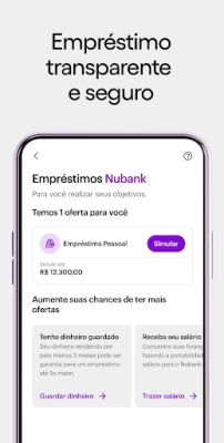 Experimentează libertatea financiară și gestionează-ți banii așa cum merită: inteligent, sigur și cu încredere deplină. Nubank este partenerul tău de încredere pe drumul către o viață financiară mai bună, simplificând fiecare tranzacție și decizie cu tehnologie de vârf și un angajament față de utilizator.