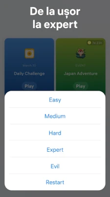 Cu șase niveluri de dificultate, de la "rapid" și "ușor" la "expert" și "gigant", Sudoku.com îți oferă exact provocarea de care ai nevoie. Începe cu un ritm lejer pentru a-ți încălzi creierul sau plonjează direct în complexitatea unui puzzle "dificil" pentru a-ți ascuți gândirea analitică. Pentru a-ți simplifica parcursul, aplicația include funcții inteligente precum sugestii utile, o verificare automată a greșelilor și evidențierea dublurilor. Mai mult, poți utiliza funcția de Notițe pentru a-ți marca posibilitățile, exact ca pe hârtie, acestea actualizându-se singure pe măsură ce completezi grila.