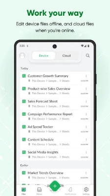 Creează, editează, partajează și colaborează la foile tale de calcul cu aplicația Zoho Sheet, concepută pentru dispozitive Android. Indiferent dacă folosești un smartphone sau o tabletă, poți lucra gratuit, având flexibilitatea de a gestiona datele atât offline, cât și online.
